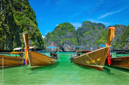 Amazinm Maya Bay and longtail boats, Phi Phi Islands, Thailand
