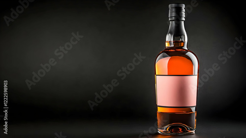 Amber Liquid in a Glass Bottle with a Blank Label Gleams Under Soft Lighting on Dark Backdrop