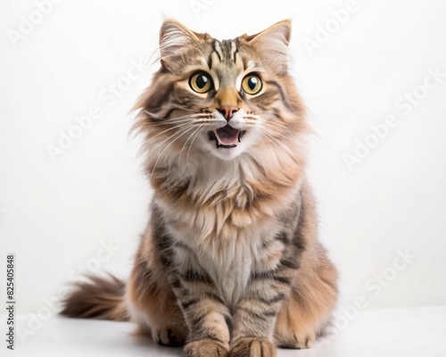 American Curl breed cat sitting isolated on white background looking at camera.