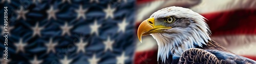 american eagle side view portrait banner with american flag in background