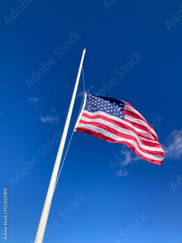 American flag and blue sky