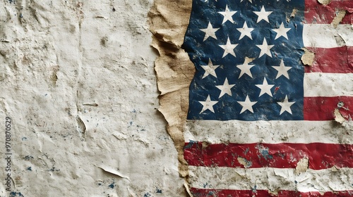 American flag corner is partially draped across a textured, light-colored concrete surface, leaving ample negative space on the left. The scene evokes patriotism and pride with a minimalistic design.