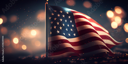 American flag ,United States of America. National holiday U.S. Independence Day, Memorial Day and Happy martin luther king day. USA flag with bokeh background. Generative AI.