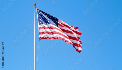 American flag waving against a clear blue sky