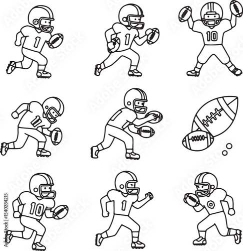 American Football Player Action Poses Line Drawings for Animation or Design Projects