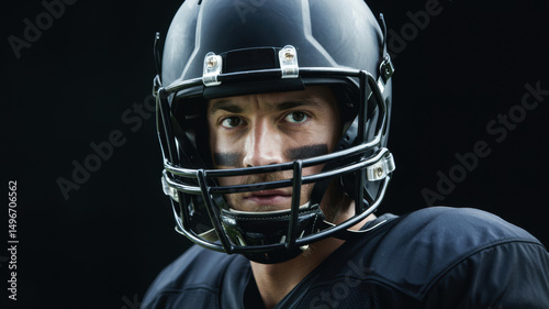 American football player with intense focus, conveying determination and strength.
