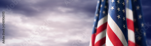 American National Holiday. US Flags with American stars, stripes and national colors. President's Day. 4th July. Veterans Day. Memorial Day.
