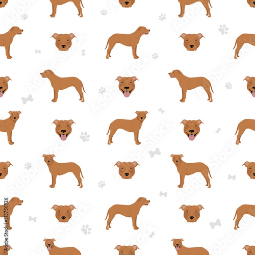 American pit bull terrier dogs seamless pattern. Color varieties, infographic