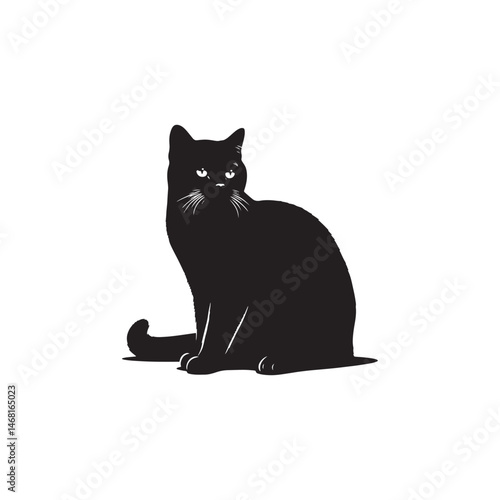 "American Shorthair Vector Silhouette: A Minimalist Representation of the Majestic Domestic Cat, Showcasing Its Elegant Posture, Distinctive Features, and Charming Appeal in Clean Lines."