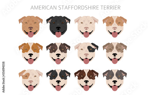 American staffordshire terrier clipart. Coat colors set. All dog breeds characteristics infographic