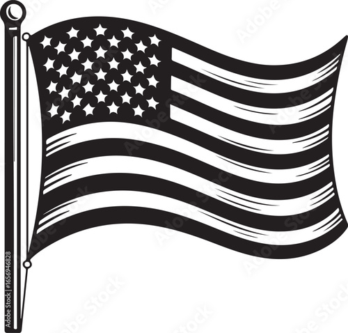American USA Flag Waving Vector Illustration on Checkered Pattern