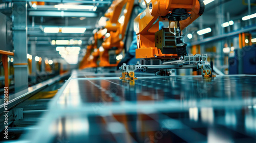 Amidst the machinery of a factory, a worker ensures the quality of a solar panel in solar manufacturing.