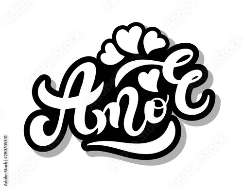 Amor. "Love" in Portuguese. Hand drawn lettering. Vector illustration. Perfect logo for Wedding or Valentine's day design