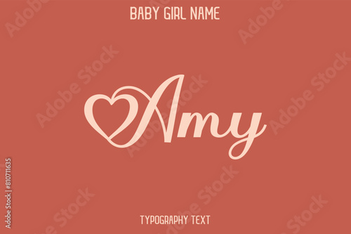 Amy Woman's Name Cursive Hand Drawn Lettering Vector Typography Text on Dark Pink Background