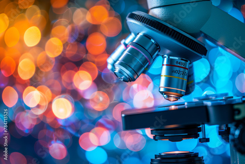 An abstract background featuring a close-up of a microscope