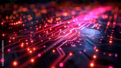 An abstract background for technology showing a high tech interface with a dynamic composition and lots of lights.