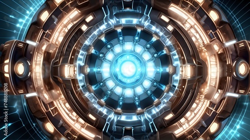 an abstract background with an arc reactor-like central element emitting waves of energy, portraying the power and control over temporal forces.