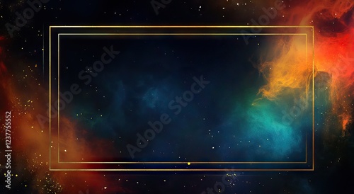 An abstract dark background with a golden frame and cosmic elements. AI generated illustration