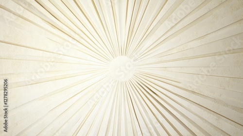 An abstract design featuring radiating lines converging towards a central point, creating a sunburst effect with a soft, neutral color palette.