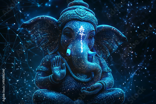 An abstract digital background featuring the beloved Hindu deity Ganesha