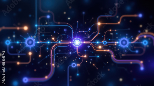 An abstract digital representation of a cloud computing environment with interconnected nodes.