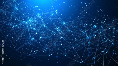 An abstract geometric background with connected lines and dots, representing social networks, global network connections, and digital communication technology.