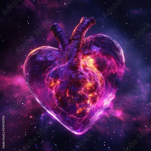 An abstract heart representing the universe with nebula and stars