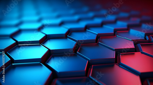 an abstract hexagon pattern behind a light blue background, in the style of ultraviolet photography, metallic surfaces