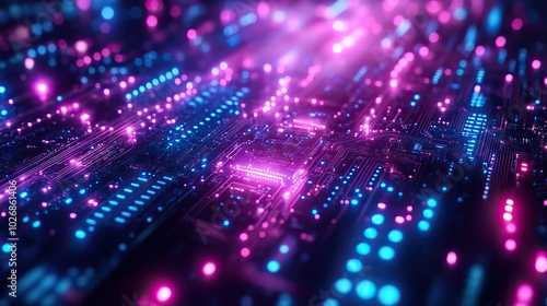 An abstract high-resolution image features blue and purple technology circuit board patterns, creating a futuristic digital backdrop.