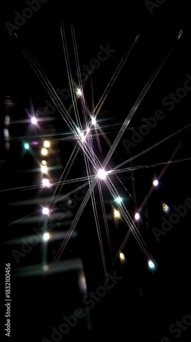 An abstract image showing bright light trails against a black background, creating a starburst effect.