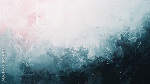 An abstract painting featuring cool colors with textured brushstrokes throughout