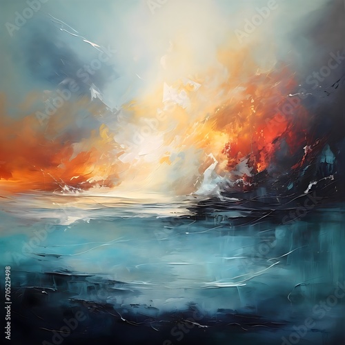 An abstract painting with sea, Colors of a storm of emotions