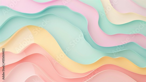 An abstract pastel background with layered shapes in lavender, mint, and peach