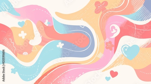 An abstract pastel wavy background with an organic, flat design pattern..