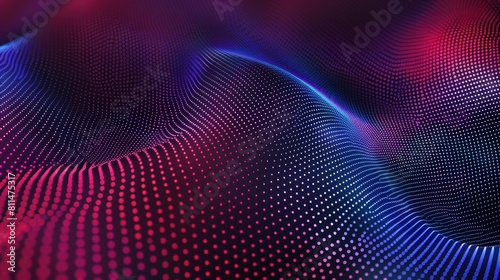 An abstract pattern of lines and dots in vibrant colors of red and blue.