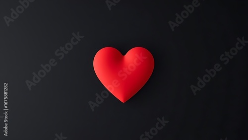 An abstract red heart shape on a matte black background, emphasizing minimalist design with negative space.