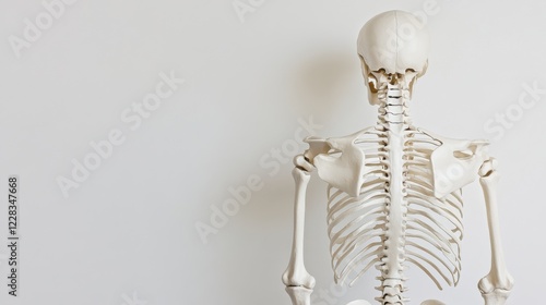 An abstract representation of a human skeleton with highlighted joints, set against a clean white background, Minimalist style