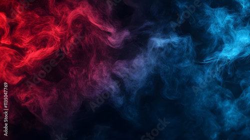 An abstract representation of backlit smoke in red and blue against a black background.