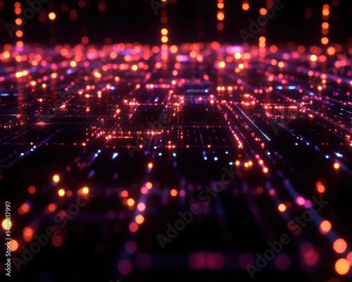 An abstract representation of digital data flow with vibrant lights and patterns, illustrating the essence of modern technology.