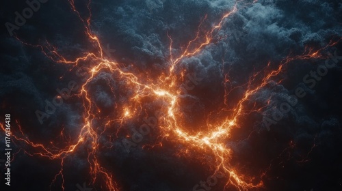 An abstract representation of electrical energy, the dominant blue color produced by this lightning flash is very intense, giving the impression of power