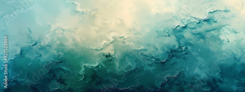 An abstract representation of swirling clouds and ocean waves in shades of blue and green, creating a serene and calming atmosphere.
