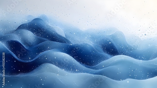 an abstract vector wallpaper of a frozen river, using wavy shapes and icy blue gradients to symbolize water and frost. snowflakes and bubbles are scattered across the design.