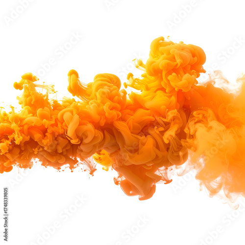An abstract, vibrant, orange plume floats against a black background, evoking smoke or liquid