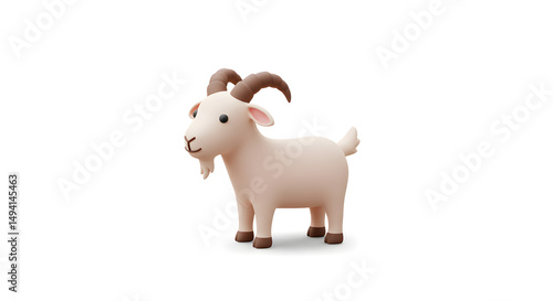 An adorable cartoon goat with elegant, curved horns. Standing against a plain background with clear expression and details.