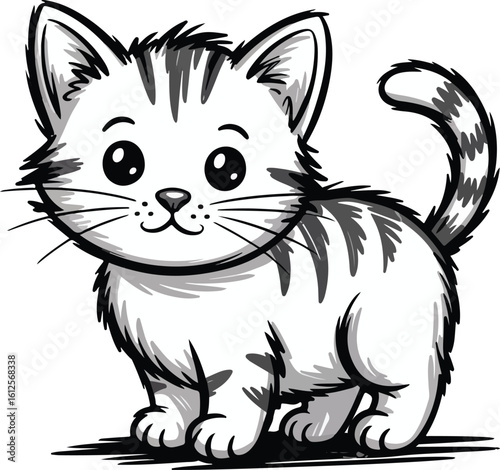 An adorable cartoon kitten with stripes and large eyes transparent png vector