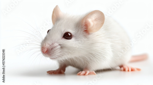 An adorable white mouse is the star in this captivating close-up studio shot.