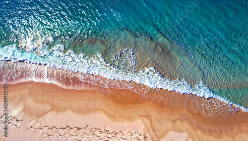 An Aerial View of a Serene Beach Surrounded by Turquoise Waters and Golden Sands