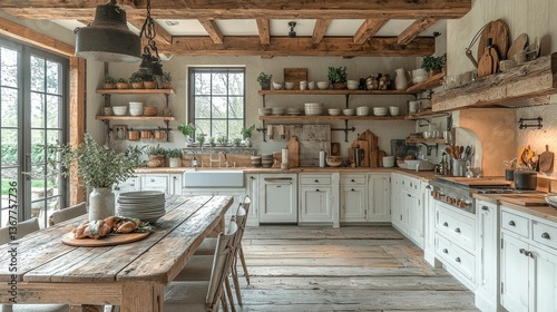 An aesthetically pleasing rustic kitchen with a welcoming farmhouse design