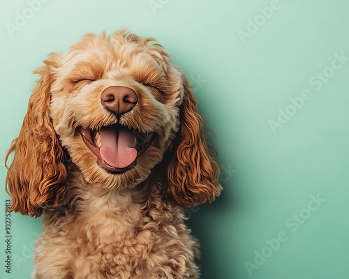 An affectionate croffle on a soothing mint green background, with a friendly smile and engaging expression. The upper section of the image remains open for text or other elements.