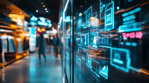 An AI powered personalized shopping experience, analyzing customer behavior and offering real-time product recommendations based on previous purchases and preferences, glowing shopping interface